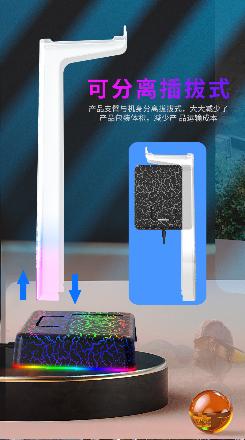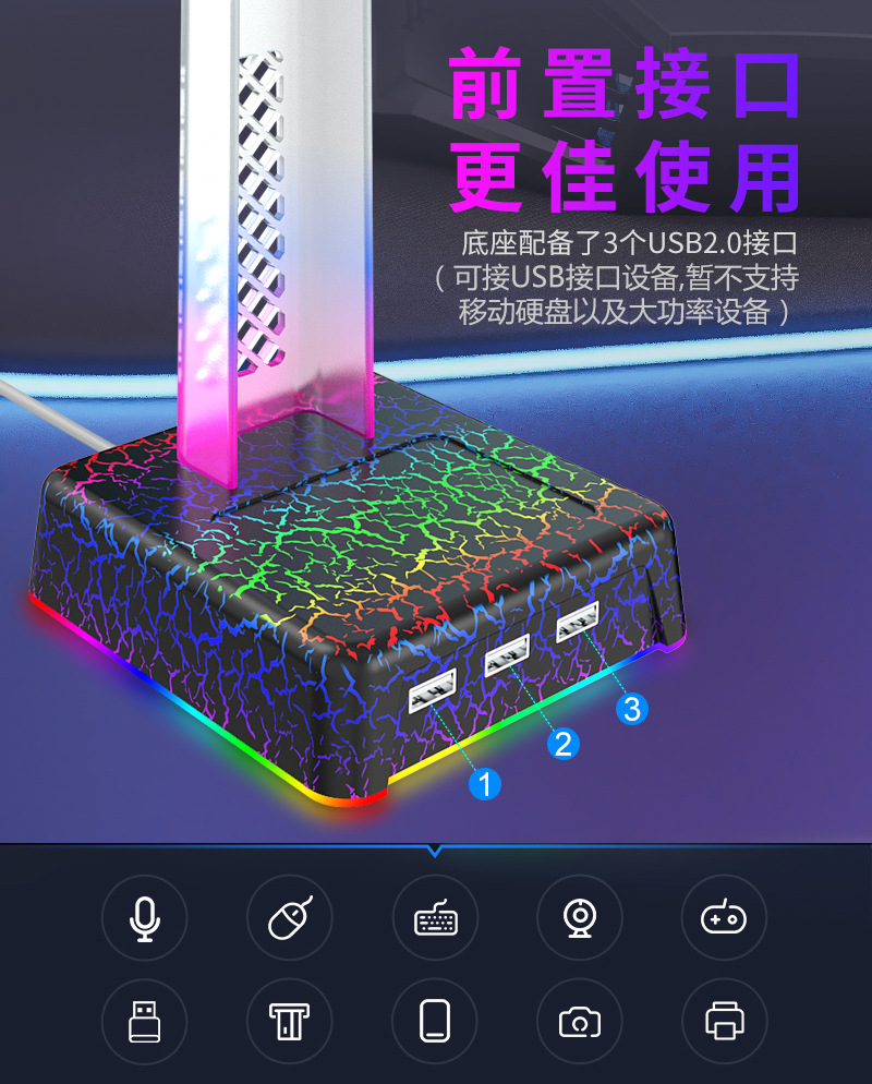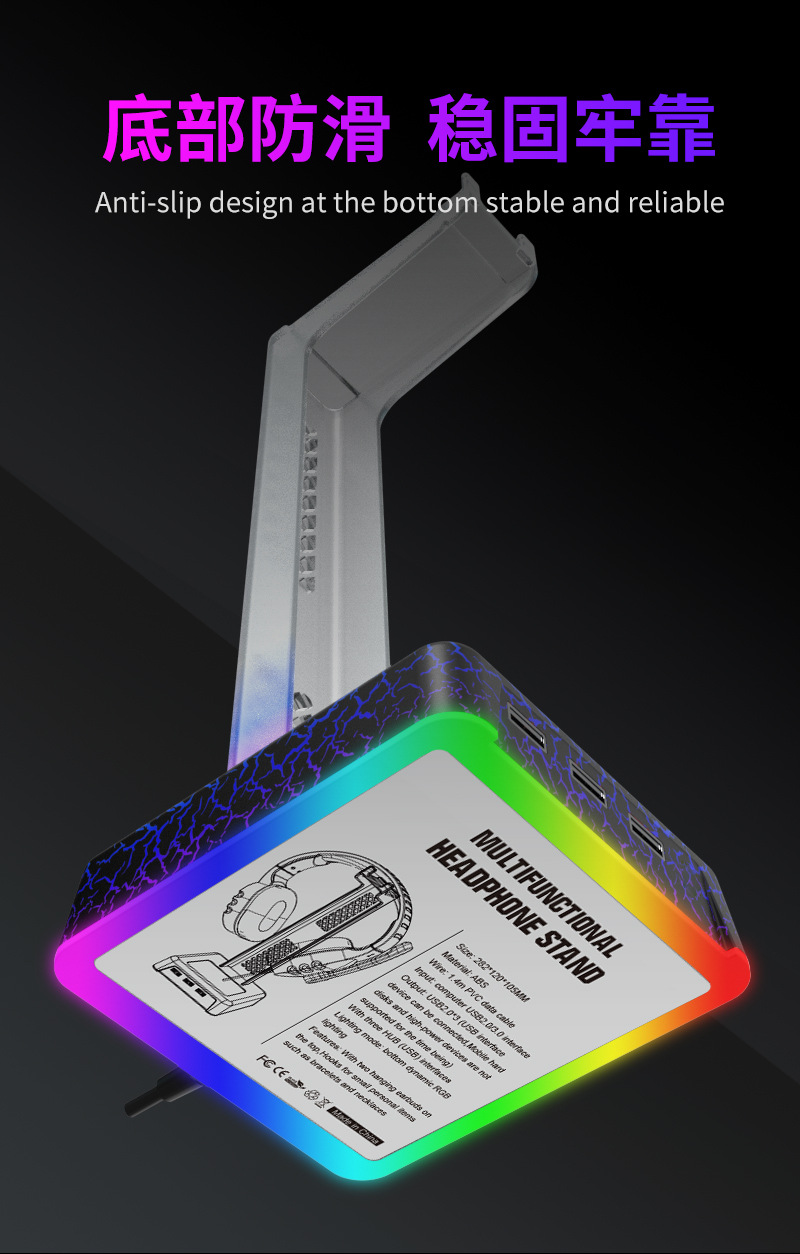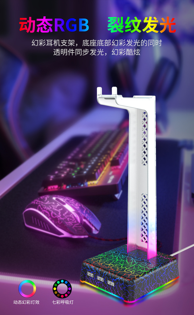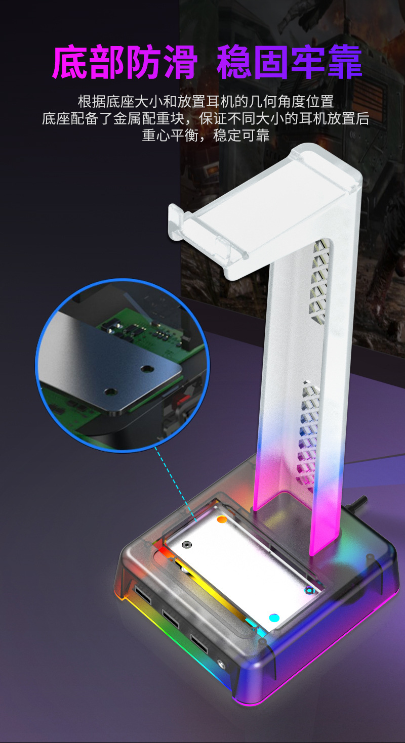 新款桌面装饰品多功能RBG发光耳机支架带HUB接口