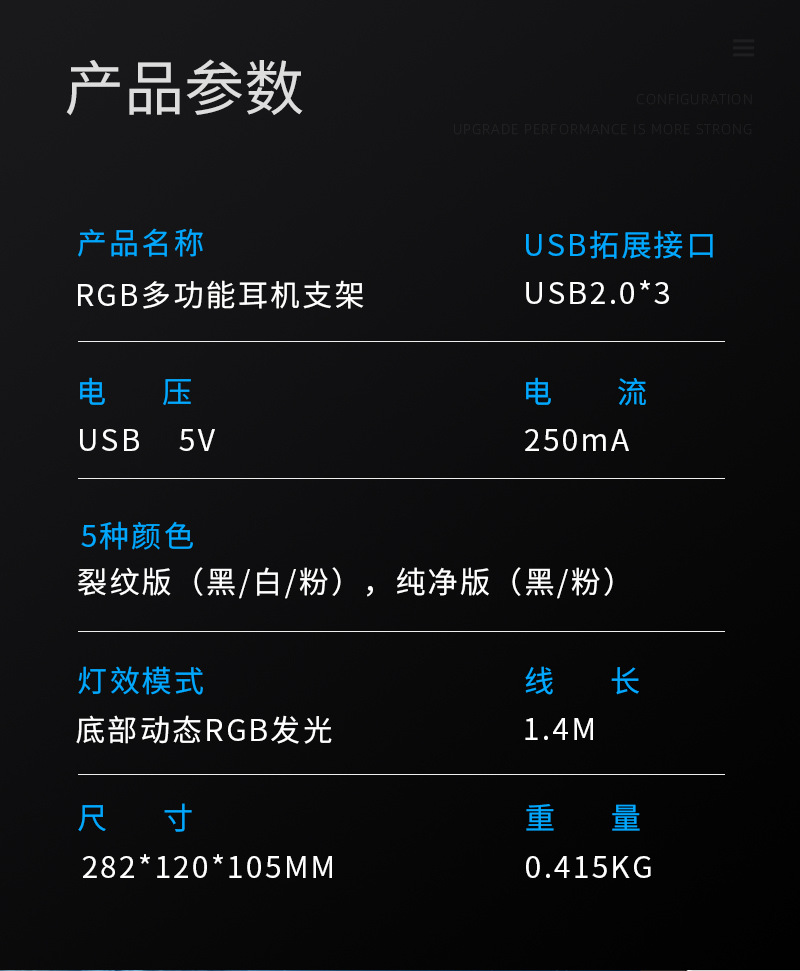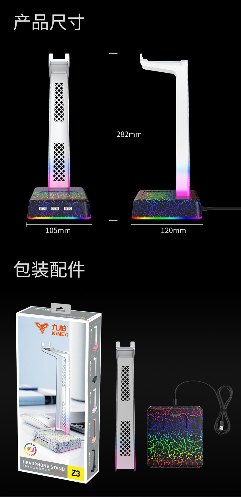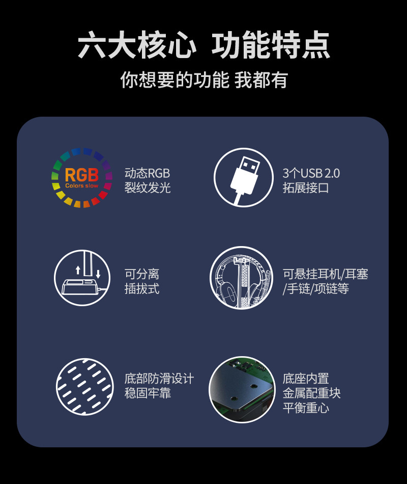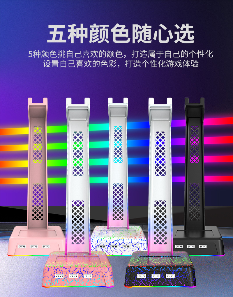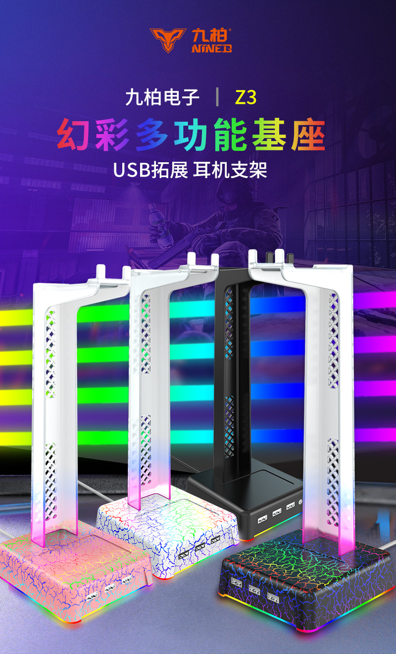 新款桌面装饰品多功能RBG发光耳机支架带HUB接口