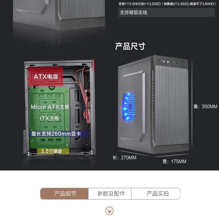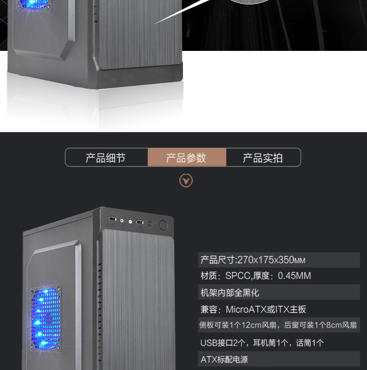 煜狐YH1加厚拉丝板机箱0.45MM 办公游戏迷你机箱
